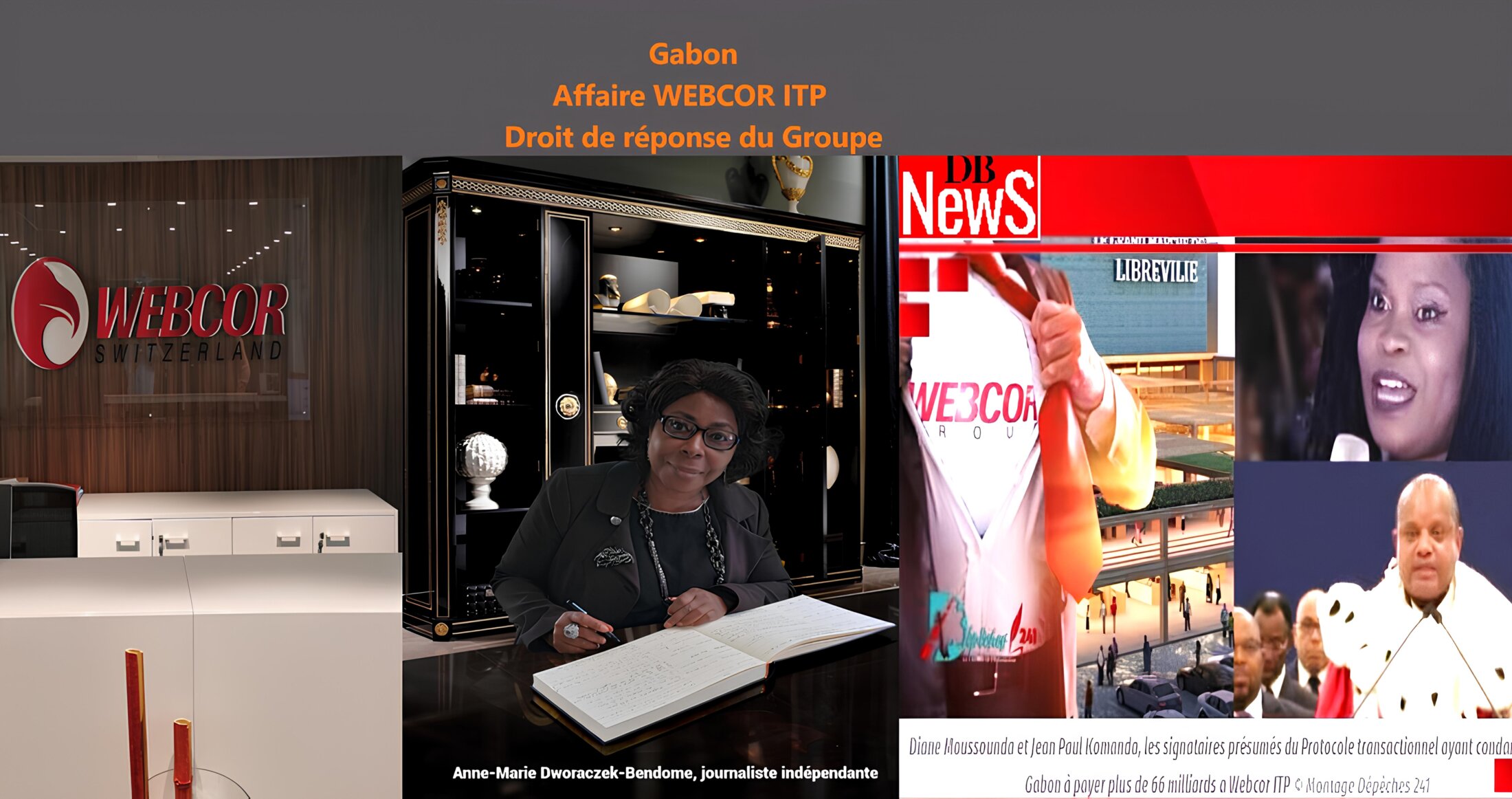 Anne-Marie Dworaczek-Bendome, journaliste indépendante. Suite à la publication de mon article dans Mediapart / Le Club / Blogs / Tribunes, intitulé « Affaire Webcor ITP : La Transition gabonaise trahit ses promesses », j’ai reçu, le 17 décembre 2024, une première demande de droit de réponse émanant de Philippe Beck, président du groupe suisse Webcor.