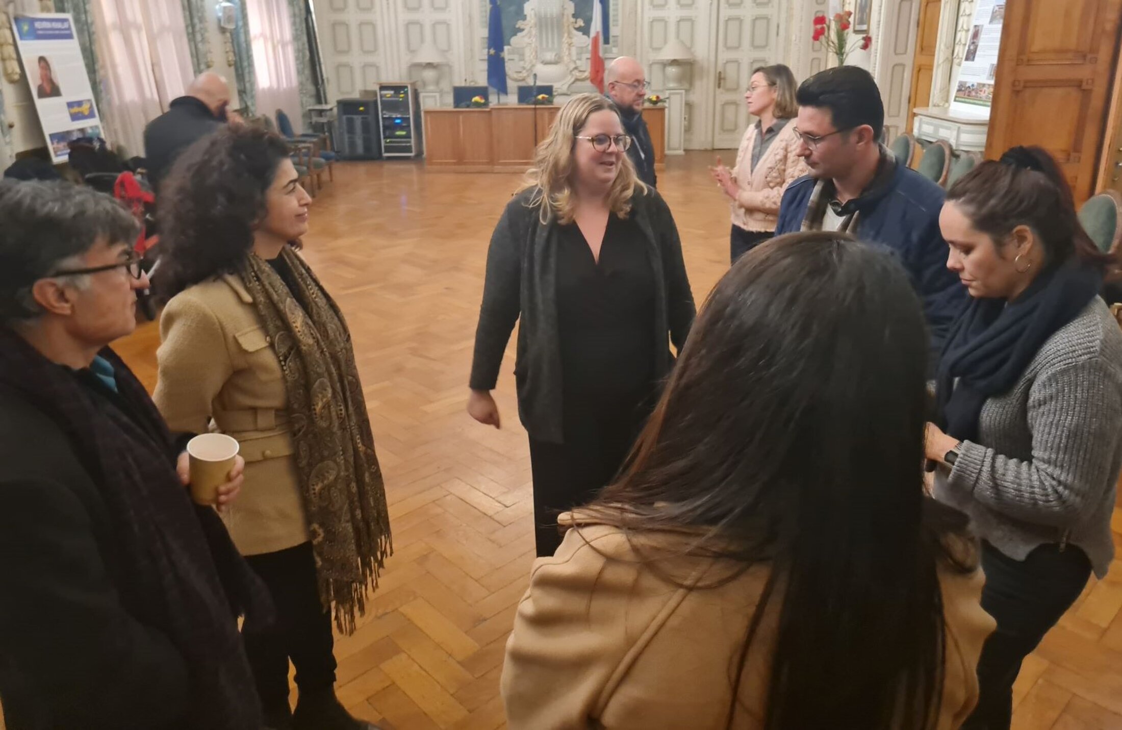 C'est dans le cadre du projet Jasmines (Jalons et Actions de Solidarité Municipalisme et Internationale avec le Nord Est de la Syrie) initié par la Fondation Danielle Mitterrand que cette rencontre était organisée.La délégation sera aussi accueillie par les villes de Paris, Grigny, Grenoble et Poitiers afin de rencontrer les acteurs de la vie associative, écologique et démocratique. Cette délégation recevra le prix Danielle Mitterrand le 16 décembre à Paris. C'est dans le cadre du projet Jasmines (Jalons et Actions de Solidarité Municipalisme et Internationale avec le Nord Est de la Syrie) initié par la Fondation Danielle Mitterrand que cette rencontre était organisée.La délégation sera aussi accueillie par les villes de Paris, Grigny, Grenoble et Poitiers afin de rencontrer les acteurs de la vie associative, écologique et démocratique. Cette délégation recevra le prix Danielle Mitterrand le 16 décembre à Paris.