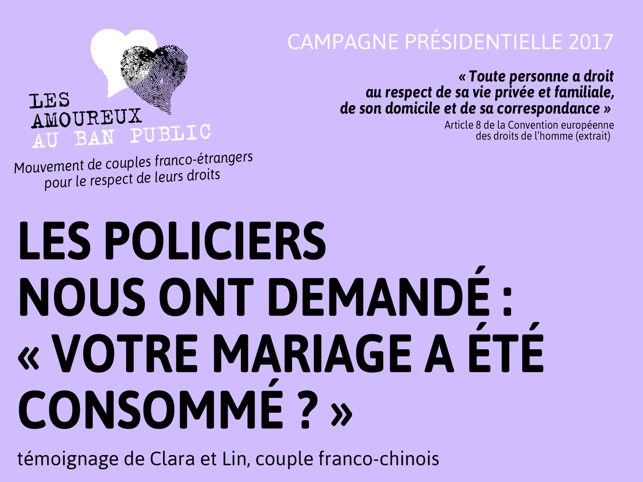Entraves à la célébration du mariage, enquêtes de police, violation de la vie privée, séparation forcée en cas de refus de visa, précarité administrative… ne sont qu’une partie du parcours du combattant auquel nous devons nous plier. Pourtant qu’est-ce qui nous différencie des autres familles françaises à part un lieu de naissance, un passeport, un parcours migratoire ?