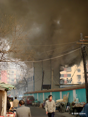 Mais je viens de recevoir à l'instant, par email une photo d'une amie ... incendie des baraquements du chantier en bas de chez elle... Les ouvriers ont tout perdu et peut être les quelques yuans gagnés sur le chantier. Souvent ils sont payés au moment du Nouvel An avant de repartir dans leur famille ... je l'espère vraiment, là, dans ces circonstances.