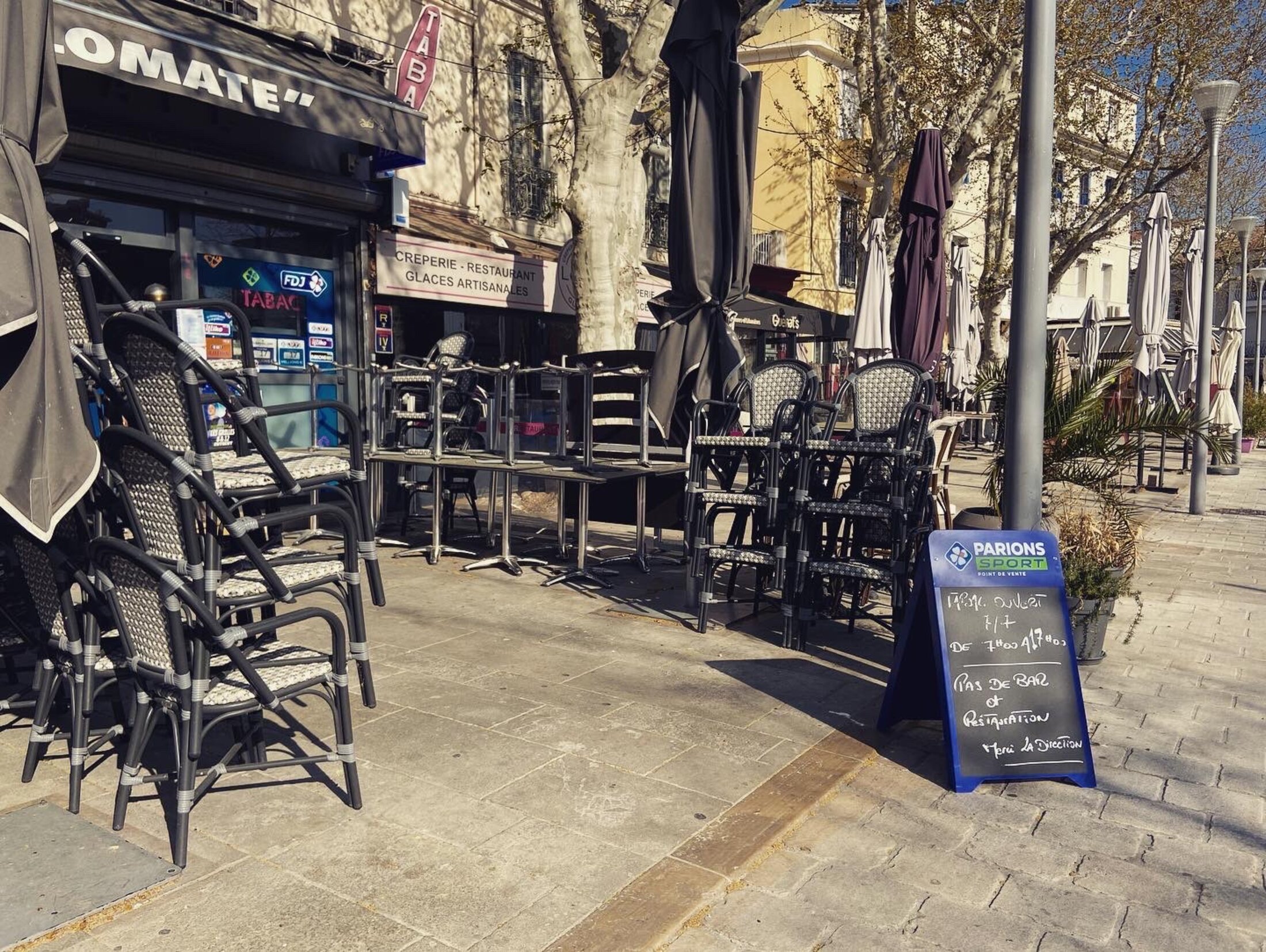Le diplo, lui reste ouvert mais son bar est désormais fermé avec des tables qui entravent le passage.
