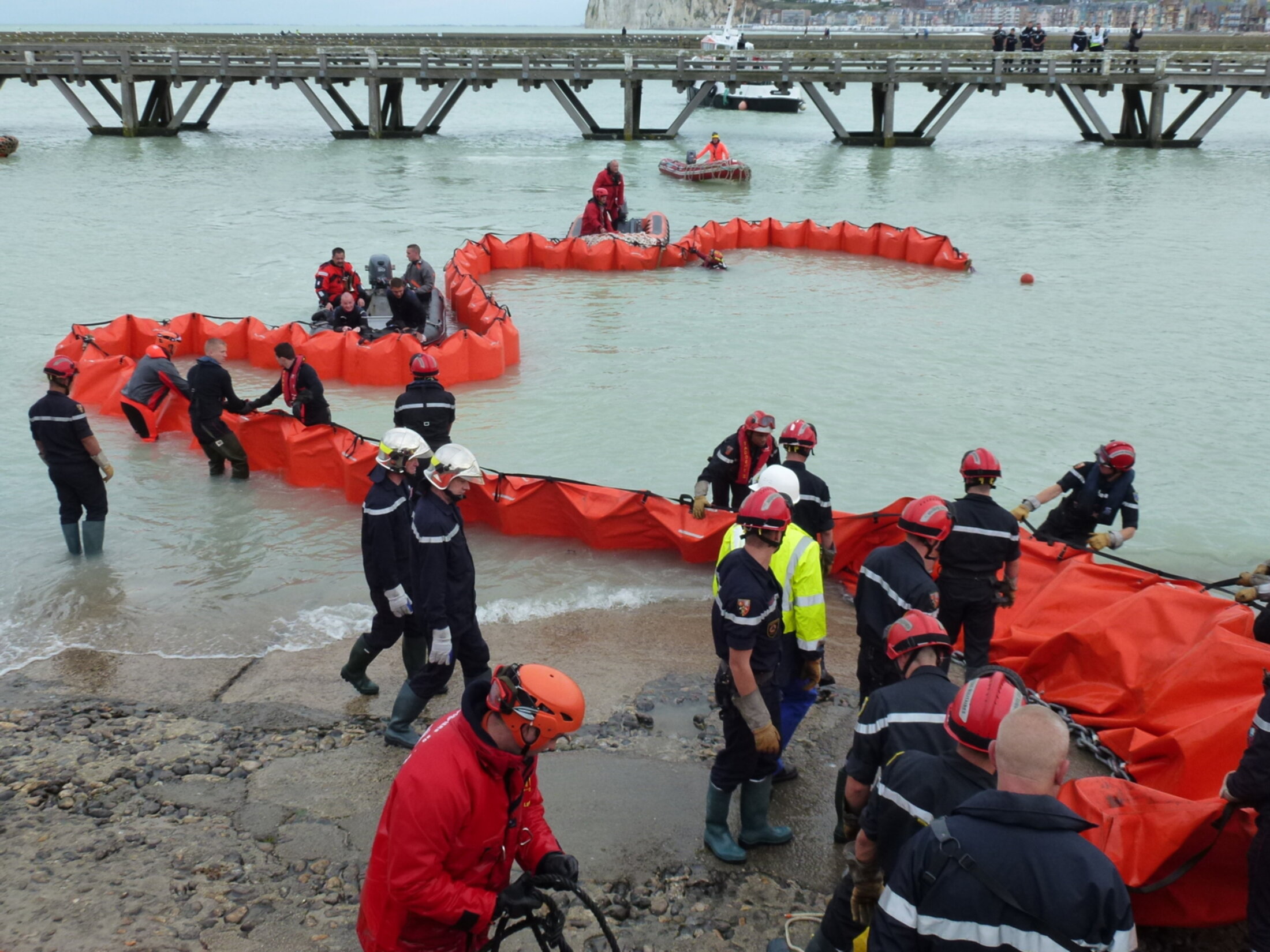 Dans le grand bassin situé à l’extérieur du centre, les employés du Cedre s’entraînent et forment des équipes étrangères à la gestion des marées noires : « Cet après-midi, nous allons déverser du pétrole dans le bassin. L’exercice va être de le contenir et de le pomper. » Les équipes ont besoin de faire régulièrement ce genre d’exercice pour tester les différents pétroles et les différentes méthodes pour les contenir et les ramasser : « C’est très important car tous les pétroles ne réagissent pas de la même manière. »