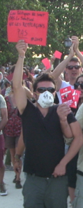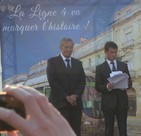 L'AG Populaire Nuit Debout, rejointe sur place par Villages Debout Pic-Saint-Loup, des militant-es de la CGT, de Solidaires, de la CNT et des sans partis, sans syndicats, avait appelé à perturber le discours de Manuel Valls, venu à l'invitation de son ami Philippe Saurel, maire exPS - aujourd'hui classable plus à droite que le PS, c'est dire - pour l'inauguration de la ligne 4 du tram. Malgré un impressionnant dispositif policier, des palpations corporelles et le refoulement de militant-es nuitdeboutistes (voir communiqué ci-dessous), rien n'a pu empêcher que nous nous regroupions près de l'estrade des ténors. Lors des interventions de Saurel et de Carole Delga (PS), pour la Région, toute allusion au premier ministre a déclenché des huées qui, au ras des présent-es, ont rendu les discours inaudibles. L'intervention de Valls lui-même a déclenché une bronca mémorable de bout en bout. Loi travail dégage ! Valls dégage ! Les opposant-es à la Loi Travail se sont ensuite constitué-es en cortège de 150 à 200 personnes au nez et à la barbe de la BAC, applaudi sur son passage par certain-es, et, arrivé-es aux grilles enserrant le Peyrou ils/elles sont resté-es nez à nez avec un barrage de flics. Décision a été prise de forcer le passage, ce qui a été fait sans problème. Nous avons rejoint à l'Arc de Triomphe (!!!) nos camarades qui avaient été refoulé-es, le second barrage de flics s'ouvrant à notre passage. Une manifestation a ensuite sillonné la ville en scandant les slogans contre la Loi Travail, le gouvernement et leur monde. Cortège dynamique, très jeune et déterminé. Dispersion sans problème. Plein succès ! Valls, tu ne t'en sortiras pas comme ça ! On ne lâche rien ! On ne te lâchera pas !