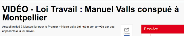 Les opposants au projet de loi, dont certains portaient des pancartes CGT, Nuit debout ou encore NPA, étaient massés devant la scène sur laquelle se trouvait le Premier ministre, Mme Delga et le maire et président de la métropole de Montpellier, Philippe Saurel (DVG). "La démocratie c'est le respect et l'écoute de chacun", a lancé le Premier ministre en poursuivant son discours, couvert de bout en bout par des sifflets fournis. Cliquer ici