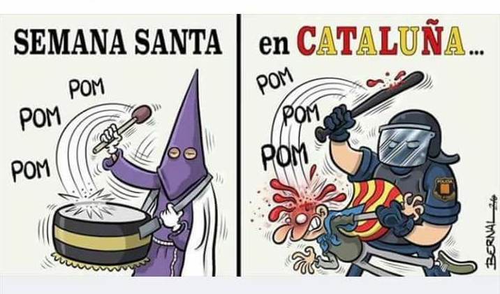 Dans son communiqué le tribunal allemand juge textuellement "irrecevable" le délit de rébellion car " ce qui fonde l'acte d'accusation espagnol n'a pas d'équivalent en Allemagne, pas même avec le délit de haute trahison" inclus dans le Code Pénal allemand. Cette irrecevabilité est argumentée sur la base de l'absence de "violence" dans ce qui se rapporte à l'action de Carles Puigdemont. Transmis au juge Llarena et à Rajoy (voir le dessin ci-dessous) !