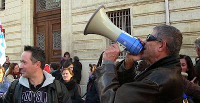 Voilà, l'AG vient de prendre ses marques et en vient à poser les jalons de la construction d'un mouvement que l'on avait cru naïvement avoir le pouvoir d'agglomérer d'emblée tout le monde : spontanéisme illusoire auquel le rassemblement sur le mode mineur devant la préfecture a opposé un démenti cinglant qui a été à deux doigts de faire chavirer l'espoir. Spontanéisme trop facile que l'AG a repéré comme l'obstacle majeur, du moment, à ce qui, il va falloir s'y faire Peillon, doit devenir incontournablement un mouvement généralisé pour l'abrogation de la réforme mais aussi, comme certain-e-s l'ont rappelé, pour que les rythmes scolaires, leur réforme, deviennent un enjeu des enseignants eux-mêmes, des parents aussi. Façon d'en appeler à une démocratie que la gauche social-libérale (reconnaissons-le, personne n'a employé le terme mais l'idée courait en filigrane de l'AG) méconnaît définitivement sous ses dehors grandiloquents sur la nécessité de lutter ENFIN contre les inégalités scolaires. En masquant qu'elle est le vecteur de toujours plus d'inégalités sociales, celles qui déstabilisent toujours plus le travail acharné des enseignants pour "tirer tout le monde" de l'avant !