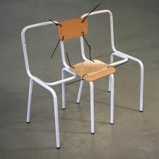 Illustration : la position "cul entre deux chaises", certes inconfortable, reste surtout une position assise quand tout commande pourtant de "se bouger" contre l'austérité (one_devided_by_two.jpg) !