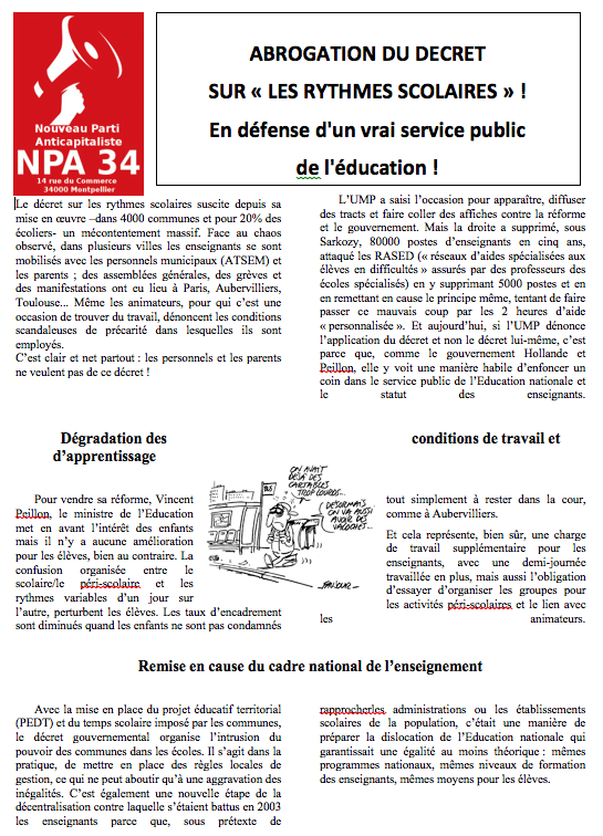 Le tract distribué par les militants du NPA 34 devant le rectorat