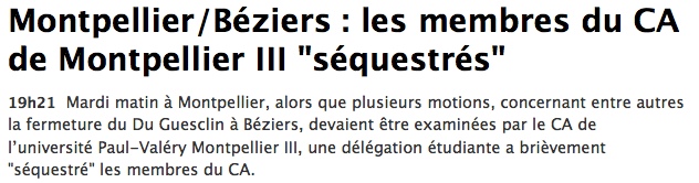 « [Montpellier/UM3] Mobilisation du 19/11 (Blocage / Rassemblement devant le Conseil d'Administration / AG) » Infos ci-dessous sur https://www.facebook.com/MobilisationUm3