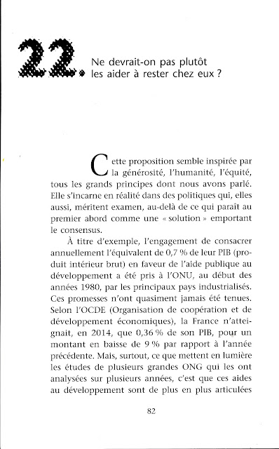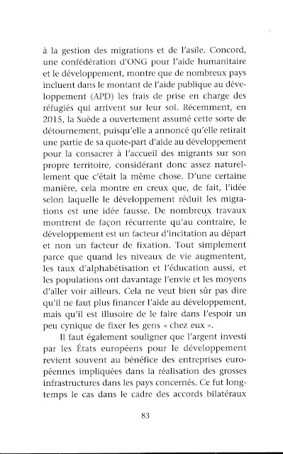 Pour revenir à la clé de voûte du positionnement de la France Insoumise sur la question dont nous parlons ici, "permettre à chacun de vivre chez soi", on lira avec profit ce que l'ouvrage court mais incisif "Migrants et Réfugiés (réponses aux indécis, aux inquiets et aux réticents)" (La Découverte) écrit en son chapitre 22 : "Ne devrait-on pas plutôt les aider à rester chez eux ?"