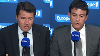 Télescopage de l'info du jour : Valls se fait chahuter à Aurillac, un superbe drapeau rouge flottant au-dessus de lui, sur l'air de "On est tous des Roms!", "Valls fasciste !", "C'est le retour de Sarkozy !" (Manuel Valls sifflé et traité de "facho" dans les rues d'Aurillac) alors que sort l'édition de la semaine de Valeurs Actuelles avec en titre de Une "Roms l'overdose" sur un infâme agencement graphique de la couverture (voir ici).