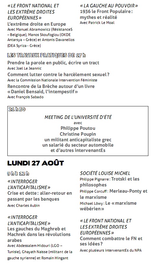 Pour plus de précisions sur l'université d'été, retrouvez la brochure avec l'intégralité du programme et la plaquette d'inscription sur le site national du NPA ou écrivez nous à universite.ete@npa2009.org .