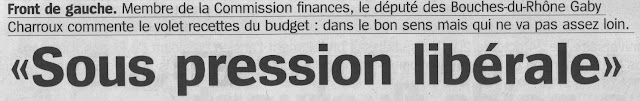 Le Parti de gauche se dit prêt à voter contre le budget 2013 ... "sans se poser pour autant comme l'opposition de gauche" et sans souffler mot de l'abstention des députés communistes sur le volet recettes mais en précisant que «Par souci de clarté, il faut aller jusque-là [voter contre] et ne pas se contenter de s'abstenir» ! Zigzag...zigzag face à ligne droite !