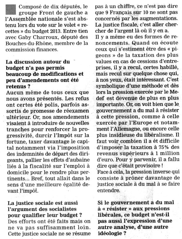Budget : les députés Front de gauche optent pour l’abstention (blog Rouges et Verts du Monde 24 octobre 2012)
