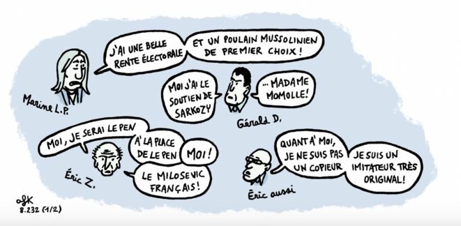 « Avant même une prise de pouvoir officielle par l’extrême droite, on baigne dans son langage ». Semaine après semaine, dans le Club, se racontent les glissements, les nouveaux caps et les subversions du sens organisés par le pouvoir, coudoyé par l'extrême droite officielle, à la faveur d'un empire médiatique bollorisé et des « triangulateurs de basse politique », comme l'écrit Khadavali. Alors qu'un défilé de néonazis était finalement autorisé hier à Paris, regard, en contributions du Club, sur « la pente vers l'abîme ».
