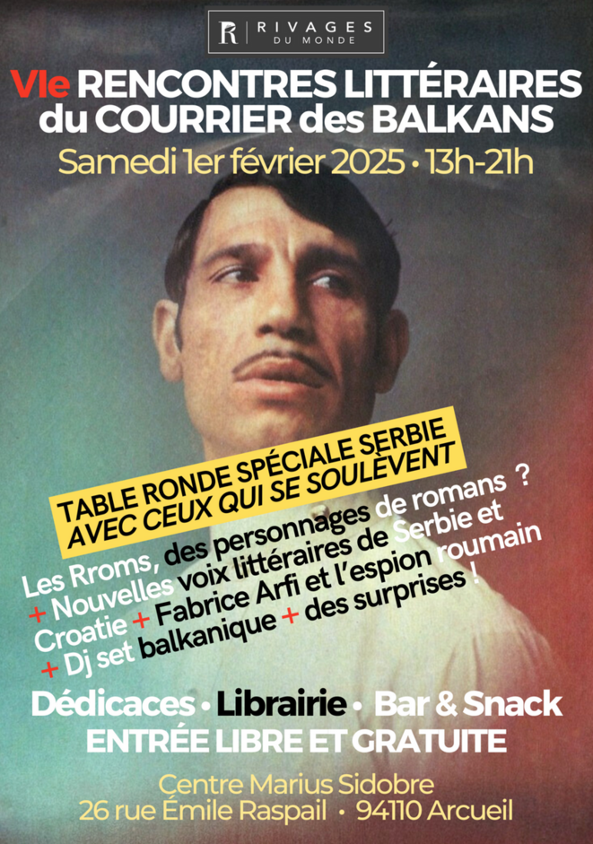 Le Courrier des Balkans vous donne rendez-vous le 1er février à Arcueil pour ses VIe Rencontres littéraires. Au programme : des auteurs, des éditeurs, des tables-rondes, une grande librairie-bouquinerie, des spécialités balkaniques et une table-ronde spéciale Serbie pour donner la parole à celles et ceux qui se soulèvent.