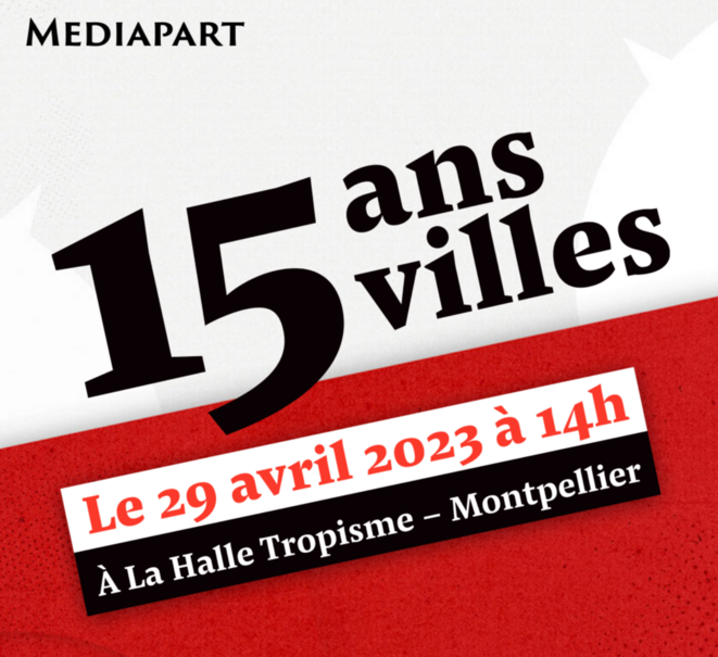 Mediapart fête ses 15 ans le samedi 29 avril de 14h à 18h à la Halle Tropisme à Montpellier. En présence de Cécile Hautefeuille, Youmni Kezzouf, Ellen Salvi, Stéphane Alliès, Edwy Plenel et d'autres invité·es. Venez échanger sur le climat social et politique actuel, l'enquête ou le traitement vidéo des luttes.