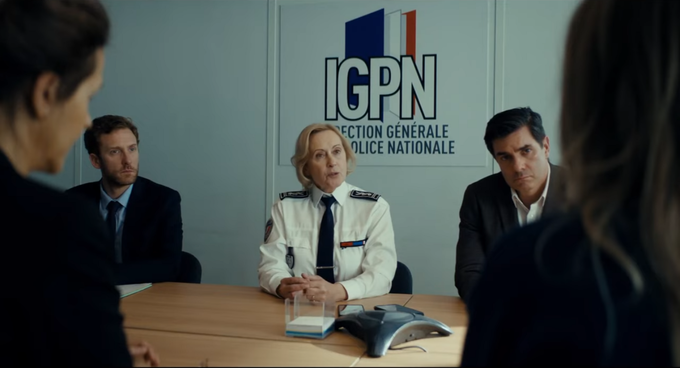 Rien n’est plus ravageur, il me semble, justement que ce point de vue critique de l’intérieur, ce travail acharné mené pied à pied par la commandante de l’IGPN incarné à l’écran par Léa Drucker (Stéphanie Bertrand), qui veut mener son enquête jusqu’au bout – et par là comprendre et nous faire comprendre les problèmes inhérents à l’institution policière – dans le but même de sauver la police. Essayant de déterminer et prouver les responsabilités des policiers fautifs de la destruction d’une vie humaine, et échouant à trouver des circonstances justificatives pour ceux qu’elle désigne tout au long du film comme des collègues, la commandante de l’IGPN nous révèle non pas seulement la culpabilité d’un ou deux individus – rituellement désignés comme des « brebis galeuses » dans le discours médiatico-politique ambiant – mais l’ensemble de la chaine causale qui mène à la catastrophe, et l’ampleur herculéenne de la tâche à accomplir pour assainir cette institution, tant la gangrène est systémique.