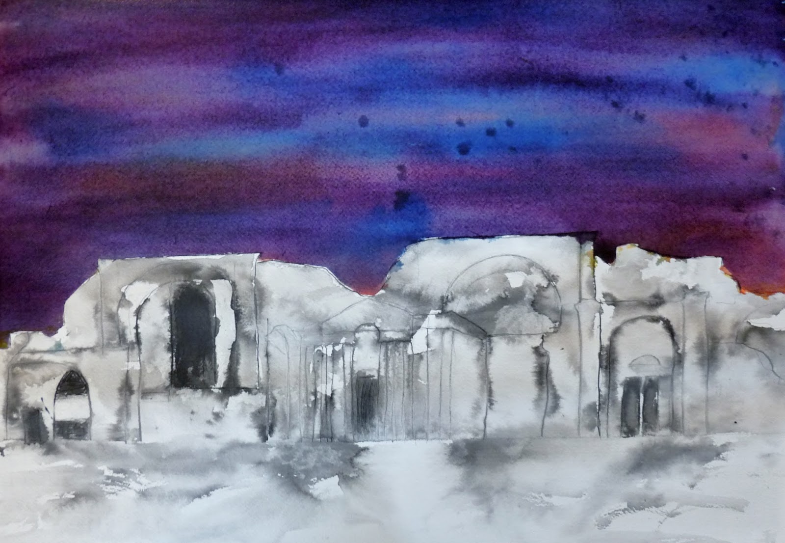 C'était l'heure des aubes violines et Hatra sommeillait. J'aimais cette encre que j'avais parcourue de brumes matinales. Je l'aimais vraiment : les nuances lumineuses de son ciel, son toucher délicat, ses ombres passées. Je l'aimais et pourtant je savais : elle ne résisterait pas à l'assaut des barbares. Après le musée de Mossoul et le site de Nimrud, Hatra allait être attaquée et mon encre à coup sûr, subirait le même sort.
