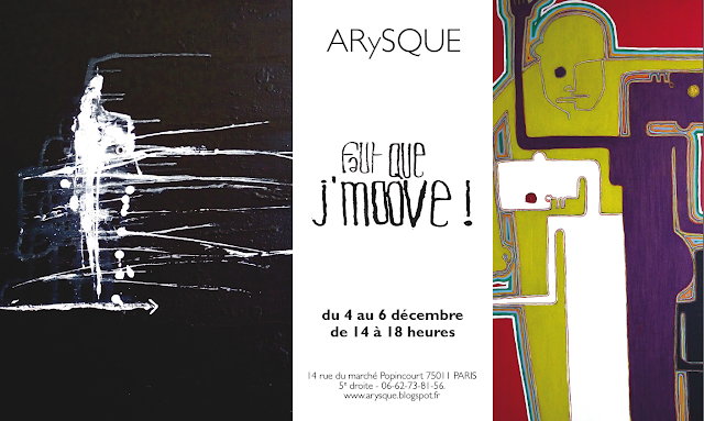 Mais je vous fais grâce du squatt pré-déménagement et prends quelques photos sur la partie haute, là où, petit à petit, l'accrochage de l'expo Faut que j'moove !prend forme, avec du neuf et du moins neuf.