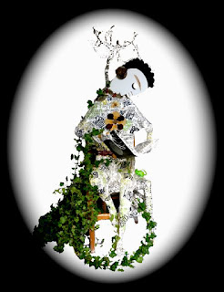 Lecteur assis sur une chaise, il est tout entier fait de mots et de végétaux. J’y ai inscrit des bribes de textes, des noms d’auteurs venus de partout et qui ont fait mon terreau culturel de citoyenne du monde. Certes, ce terreau est fortement marqué de culture française — parce que c’est là, dans cette culture, que j’ai commencé à apprendre — ; mais disposer d’une culture particulière n’a rien d’incompatible avec le fait de s'ouvrir aux autres pour se penser citoyen du monde. Au contraire : elle est ce que nous avons à partager avec ceux que nous accueillons.