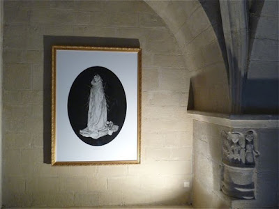 Le lendemain matin, j'ouvrais l'église et passais un bon moment à admirer l'immense photo de Delphine Balley : la violence de son sujet - cette madone piquée d'épingles - et la douceur du traitement - la souplesse des drapés, la tendresse du visage et les épingles d'acupunteur… - Troublante icône !