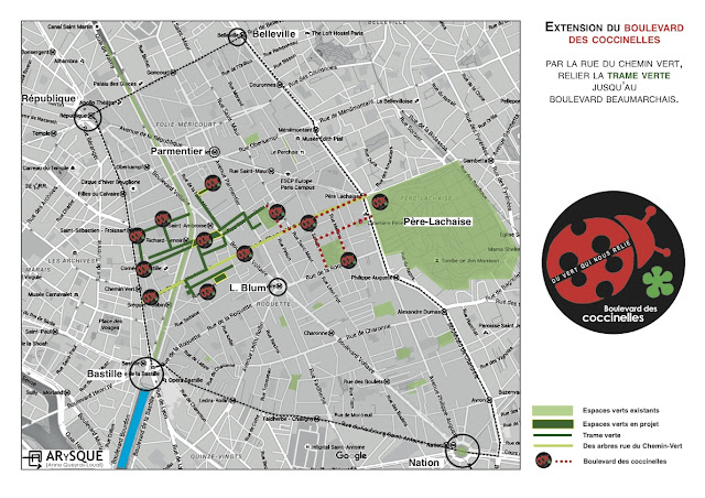 Alors, le projet s’est affiné et diversifié. Des projets voisins, plus ambitieux encore, l’ont alimenté : la Trame verte, la végétalisation de la rue du Chemin-vert… et même le Boulevard des coccinelles qui, du Père-Lachaise au boulevard Beaumarchais, souhaite relier de verdure et d’insectes jardiniers, jardins, jardinets et tous les projets verts qu’il croisera sur son passage.
