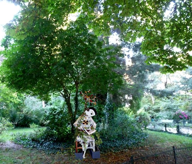 Alors, je pris une gratounnette à récurer et un piquet de tente, je les solidarisais, les peignais à l’arrache et préparais le message de la première fleur, le conseil avisé de mon Lecteur du parc : « Tout homme persécute s’il ne peut convertir, à quoi remédie la culture qui rend la diversité adorable. » (Alain). Je le glissais dans ma fleur et ces mots devinrent pistil.
