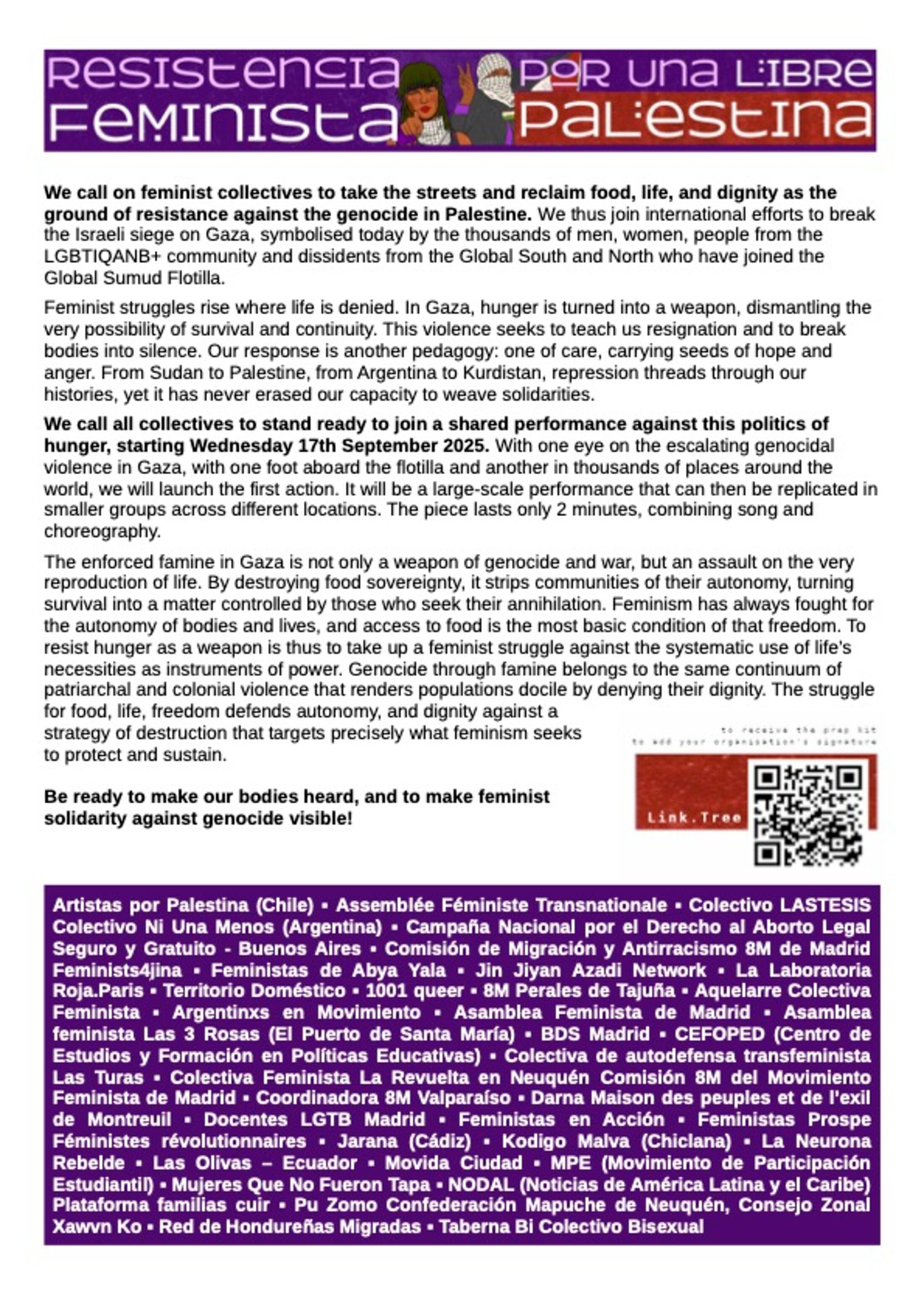 Read the call and join the action here: https://linktr.ee/resistanciafeministapalestina