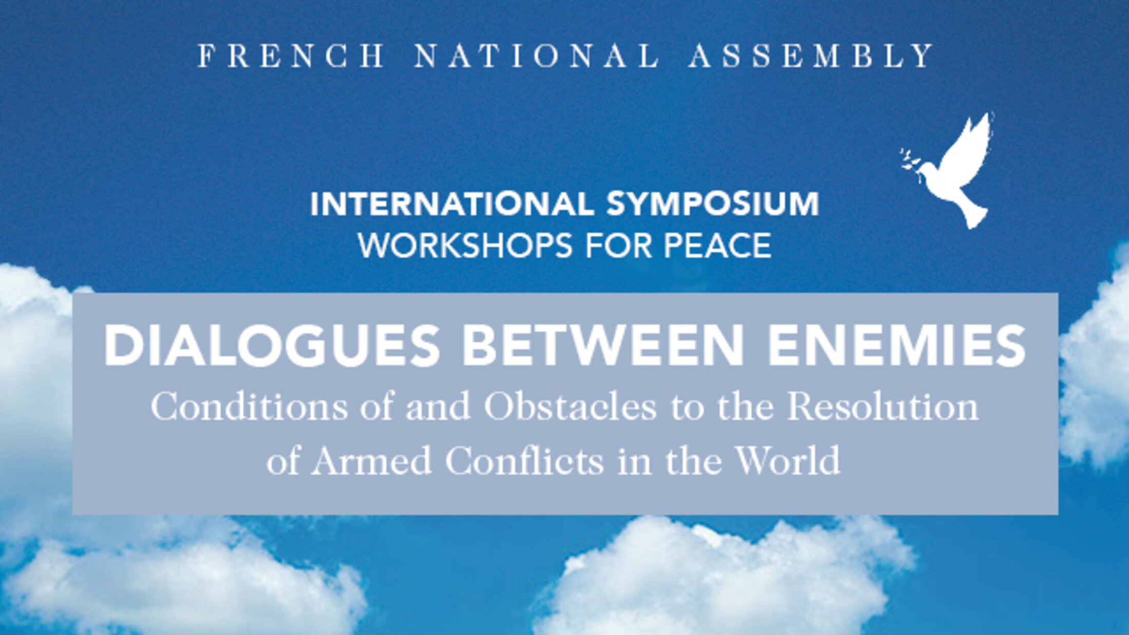 Ce colloque international « Dialoguer entre ennemis - nécessités et obstacles à la résolution des conflits armés dans le monde », a été réalisé en partenariat avec « Sortir de la violence » le projet de l’Agence nationale de la recherche, la revue Violence: an International Journal et le réseau international La Bande Passante. C'est premiers Ateliers de la paix se sont déroulés à l'Assemblée nationale les mardi 25 et mercredi 26 mai 2021.
