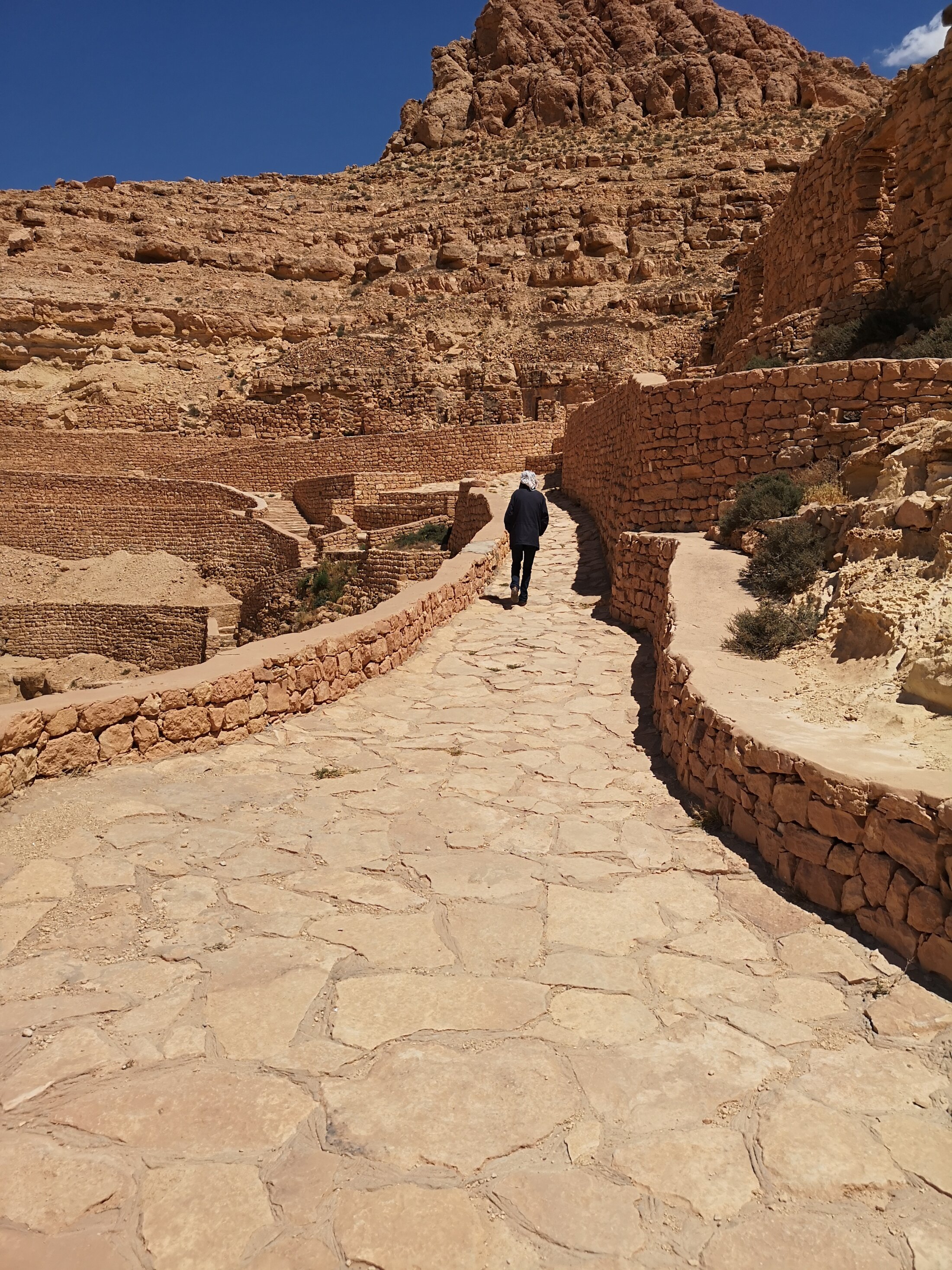 Nous partons ensuite pour Chenini, village berbère et troglodyte, pour que je prenne le repas dans un restaurant encore peu rempli de touristes. Chenini est une pure merveille architecturale et j'en profite pour faire une balade digestive en hauteur avec un habitant qui s'improvise guide local. Les paysages sont à couper le souffle et il me tarde d'y revenir ce soir pour découvrir ma chambre dans l'hôtel troglodyte.