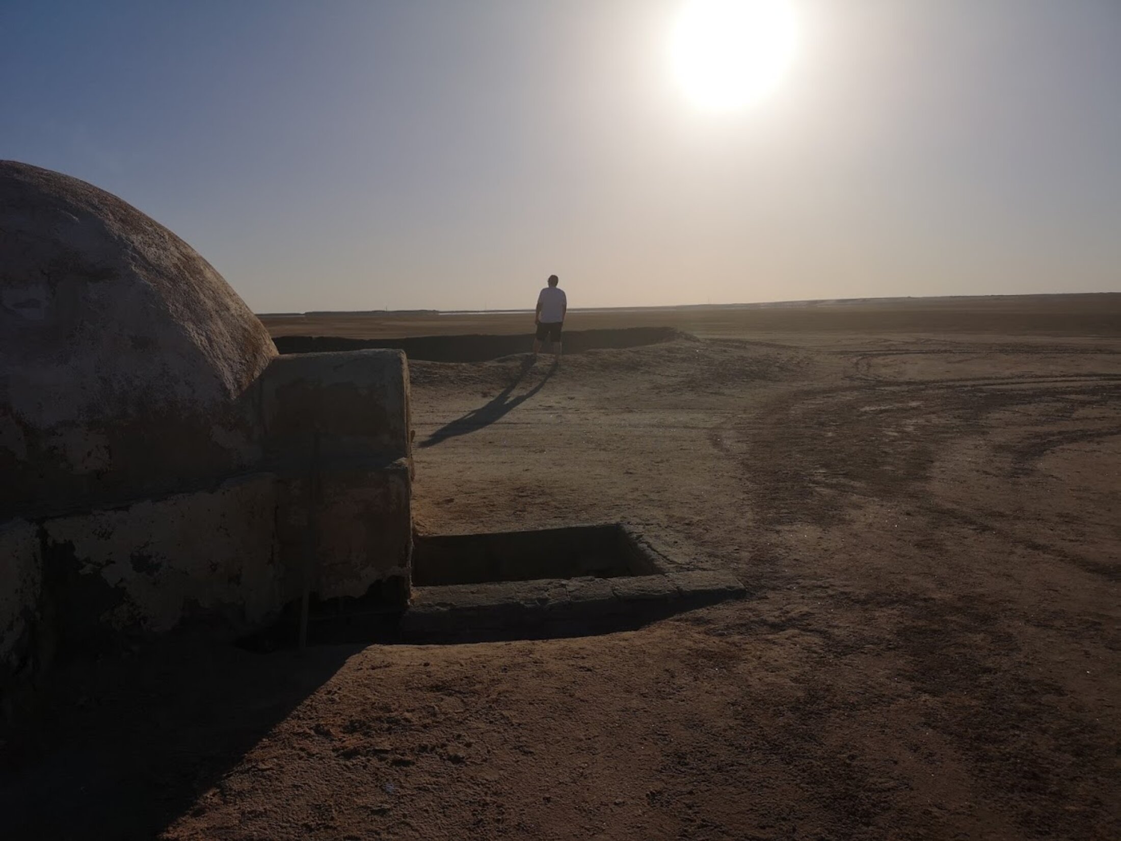 Mon regard se porte ensuite sur l'igloo...Mais parce que chaque expérience est unique, je n'ai pas envie de partager ici ce moment. Je pense sincèrement que chaque fan de Star Wars qui se rendra sur place aura compris la portée monumentale et, disons le, quasi-religieuse du lieu. Pour d'autres, il s'agira d'un lieu de tournage de la guerre des étoiles...et pour d'autres enfin, une maisonnette vide au milieu de grains de sable. Et chacun aura ses raisons de s'y rendre. Mais finalement, à l'inverse de tout ce que j'ai pu penser et écrire auparavant, je pense que ce lieu ne doit pas devenir touristique, ni indiqué par des panneaux, ni recensé sur des cartes, ni inclus dans les excursions (à contrario du village de Mos Espa), ni même relié à la route. Ce lieu, il appartient aux tunisiens et aux fans de Star Wars...mais n'y invitez pas tout le monde. C'est le pire moyen pour le voir disparaitre un jour tant il semble fragile et seul au milieu du vide. La multiplication des traces de pneus des 4x4 dans le sable autour de l'igloo a déjà bien dénaturé son caractère solitaire. Au même titre que la maison de Ben sur les terrains côtiers et préservés de Djerba, ce petit bâtiment esseulé doit, selon moi, rester à l'écart de toute tentative de mise en valeur touristique.