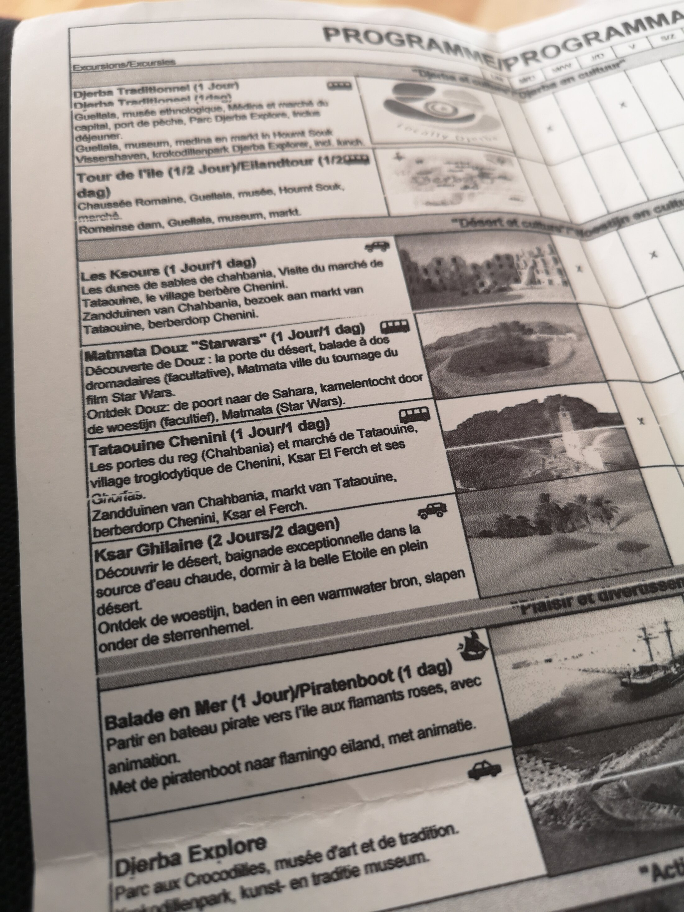 Bref, je ne trouve pas immédiatement d'offres "all and only star wars" ! En approfondissant mes recherches, je tombe quand même sur des offres intéressantes, sur généralement 7 jours, mais avec au programme autant de lieux Star Wars que d'excursions et visites "touristiques" diverses à travers le pays et donc des passages par Hammamet, Carthage voire Tunis, bien loin des lieux de tournage. Mêler découverte culturelle et passion devrait m'intéresser, mais les prix proposés et trajets envisagés sont hors budget et hors calendrier. Souhaitant plutôt optimiser le séjour...pardon, le pèlerinage...j'éviterai donc d'inclure ces suppléments dans mon voyage.
