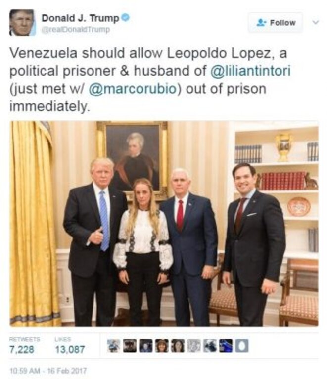 Logique, c'est le pire des opposants avec ses alliés Machado et Capriles Lopez & Co, celui qui a participé au coup d'Etat contre Chavez en 2002, appelle à renverser Maduro par la violence, celui des guarimbas, celui qui refuse de participer à toute élection, celui qui appelle les USA à intervenir militairement, etc.