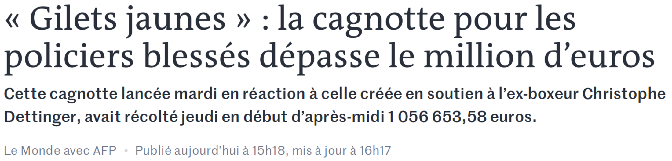 A 15 heures jeudi, 1 056 653,58 euros avaient été récoltés, de la part de 36 894 donateurs – soit une moyenne de plus de 27 euros par don.