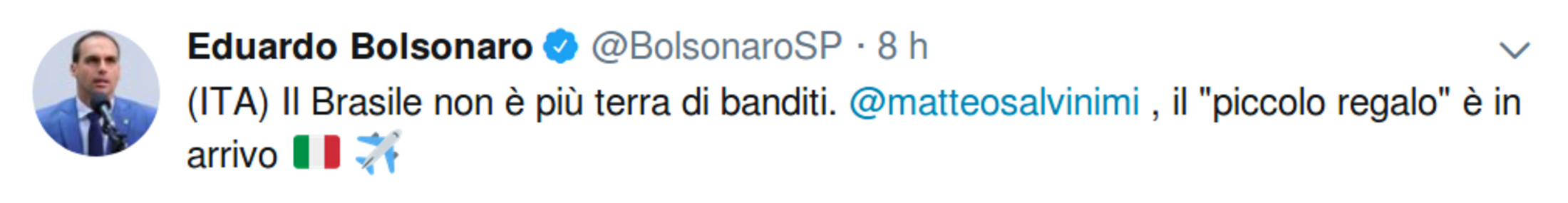 « Le Brésil n’est plus une terre de bandits. Matteo Salvini, le petit cadeauva arriver. »