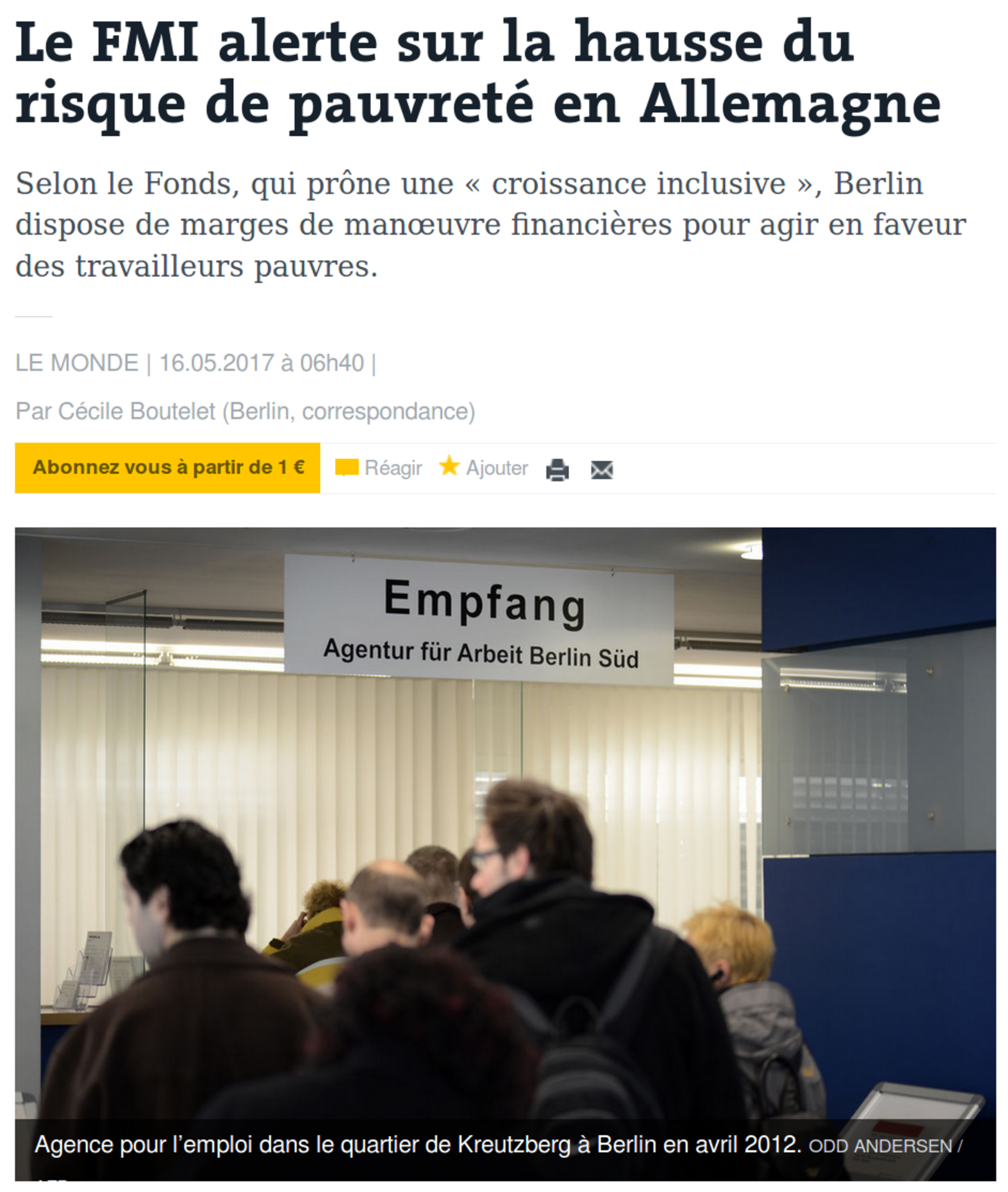 Il était temps ! Depuis des années, l'Allemagne tente sans succès de rattraper la pauvreté française. D'après le FMI, c'est chose faite. Grâce aux milliards d'euros mis de côté par une élite attentive au bien-être du pays, le nombre de démunis a significativement augmenté. C'est la démonstration que l'endettement n'est pas la seule solution.