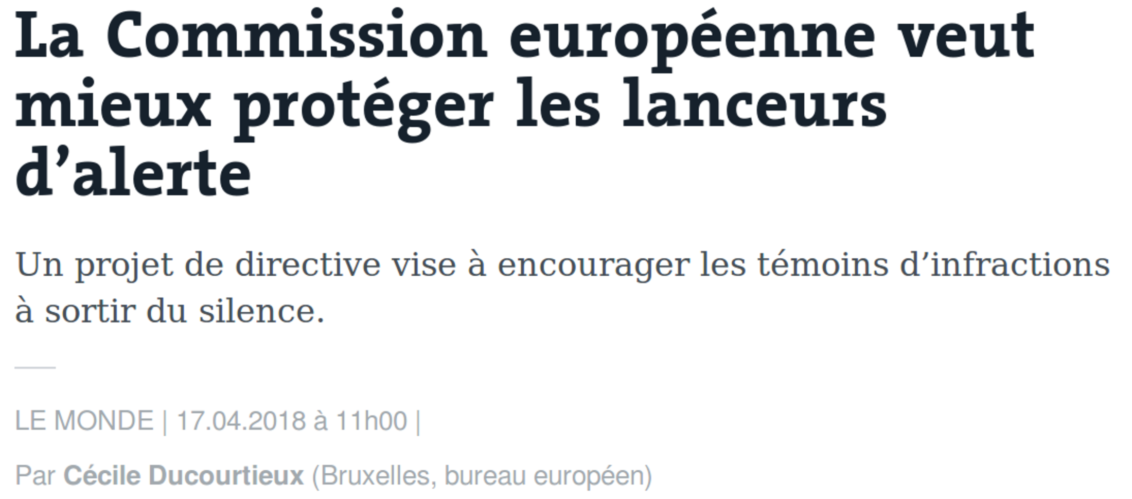 Alors qu'en France une loi sur le secret des affaires, basée sur une directive européenne, est en passe d'être votée, la commission européenne envisage de rendre possible la divulgation de faits ou soupçons par quiconque au sein de l'entreprise.