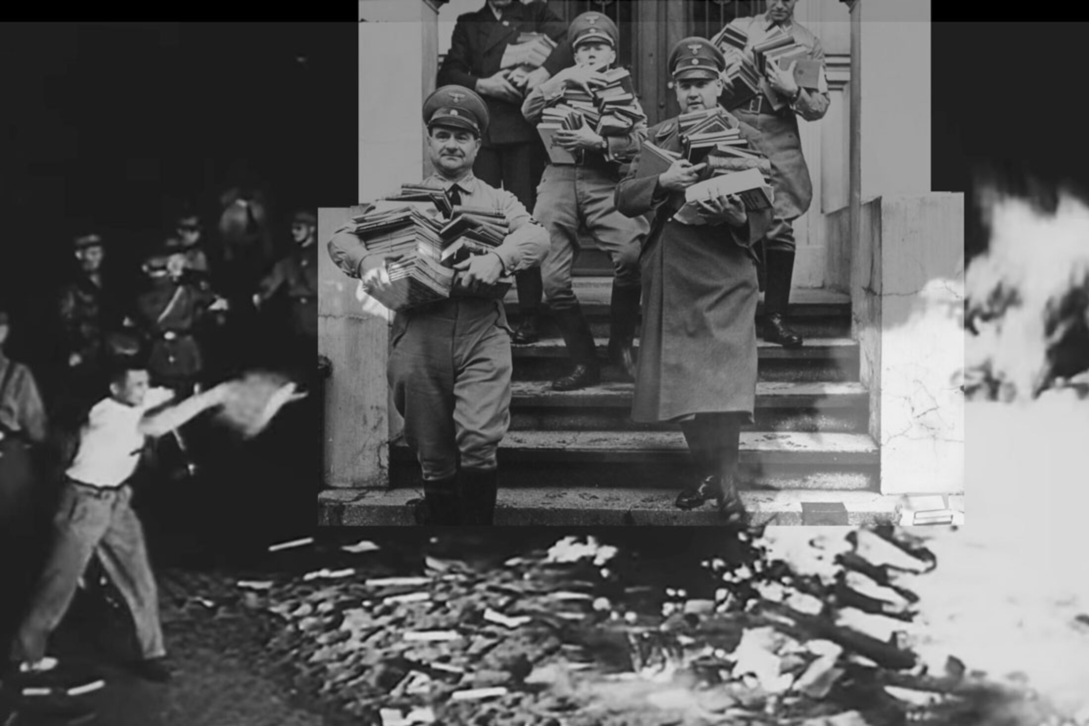 Dans ce documentaire de l’armée américaine sur le procès de Nüremberg, la voix off commente les autodafés de 1933 :