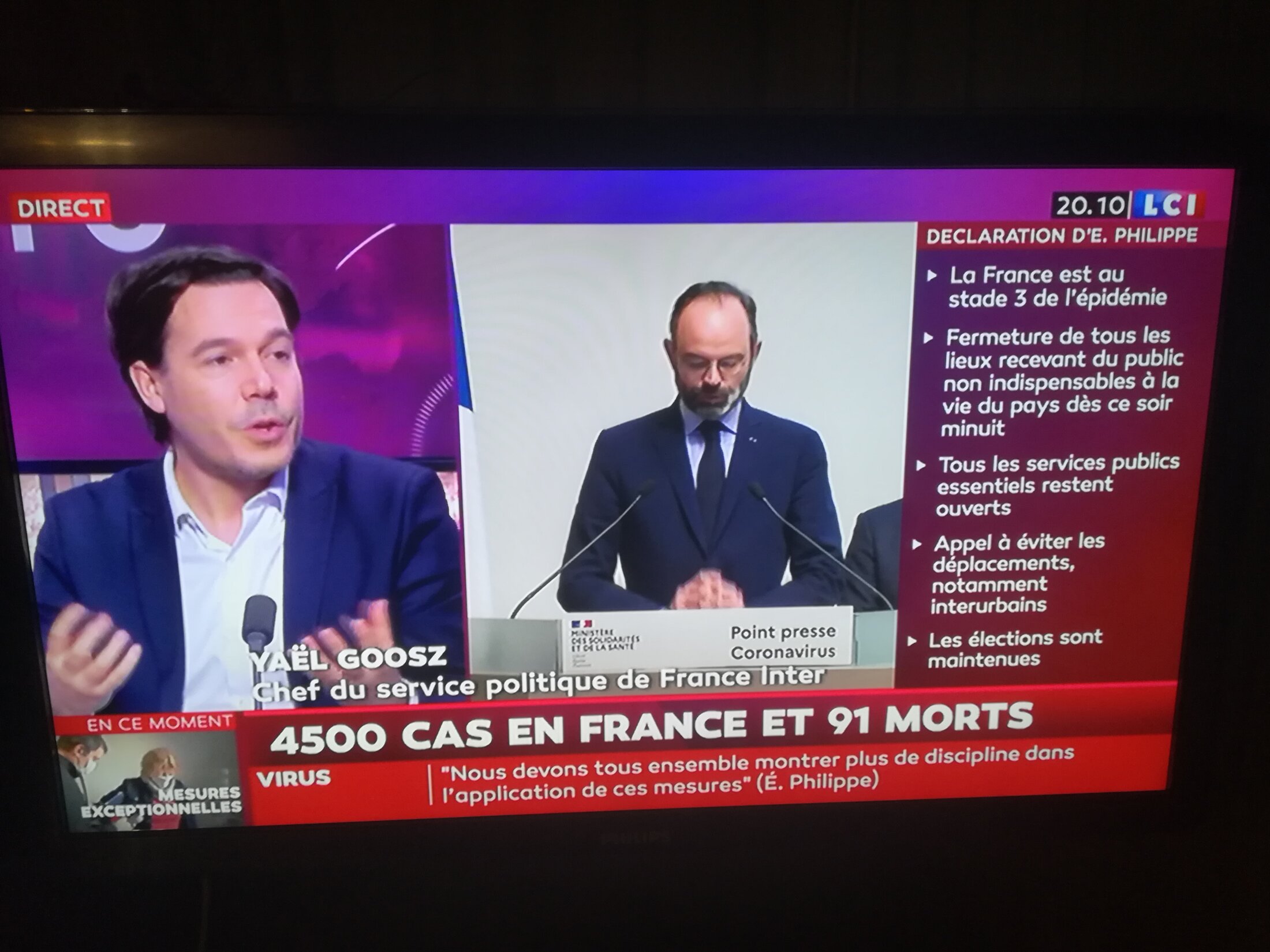 PS : C'est aussi l'occasion de découvrir la trombine du Yael Goosz, chef du service politique de France Inter que c'est nous qu'on paye, qui sur LCI n'a évidemment pointé aucune des gigantesques contradictions % au maintien des élections vs panique-annonces.