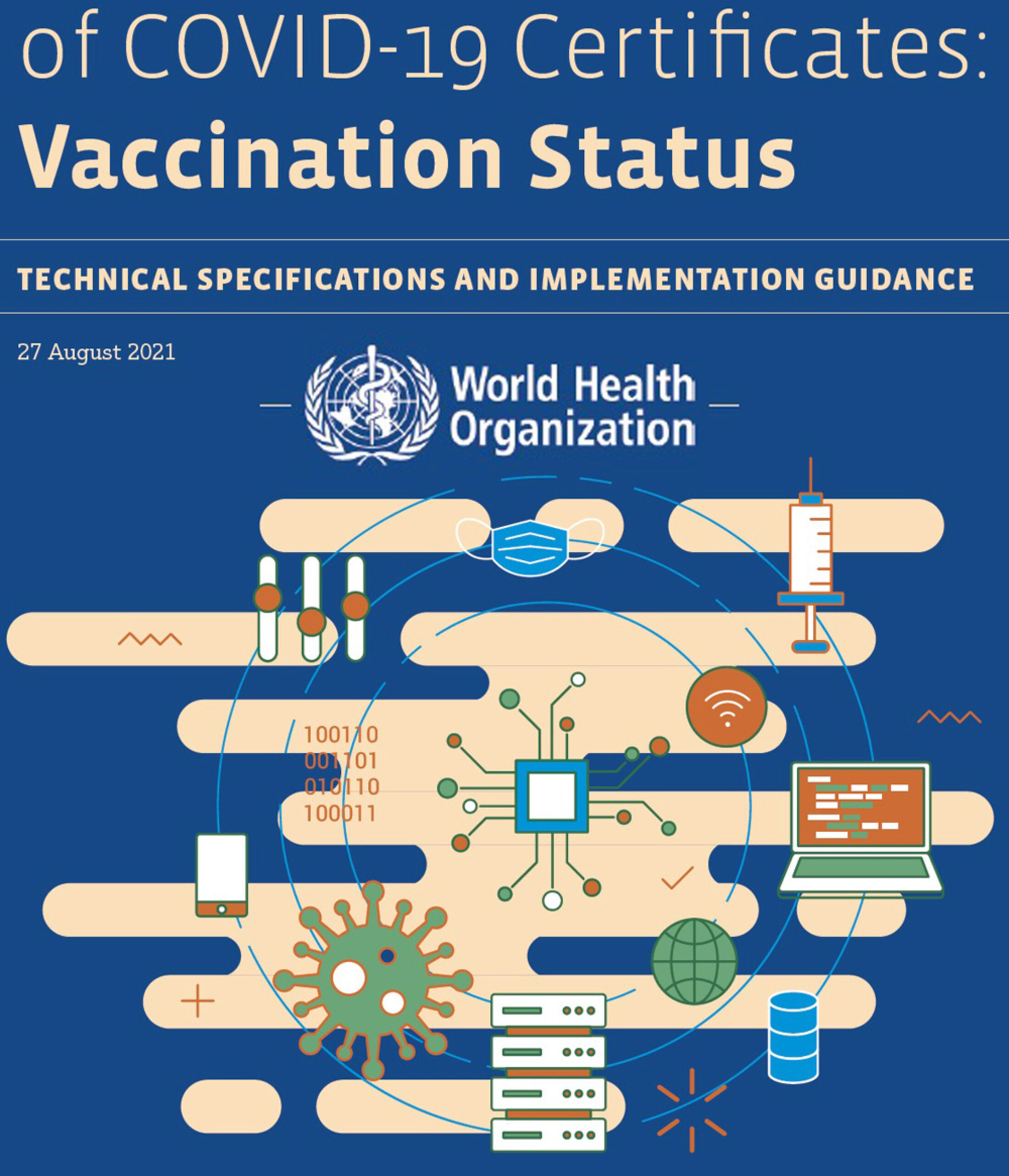 Le guide des « certifications Covid-19 » du Léviathan de la santé, l’OMS, largement contrôlé par des fondations privées, laisse peu de doutes sur la vocation ad vitaem aeternam du pass ou passeport. Publié le 27 aout, il prévoit notamment la possibilité d'élargir le suivi électronique à d'autres vaccinations, ajoutant innocemment dans un tableau type le vaccin HPV contre le papillomavirus, un vaccin pour ados hautement controversé. Le guide définit les contraintes minimales auxquelles les pays devraient se conformer, à l’intérieur des territoires comme à leurs frontières, avec une marge d’adaptation à leur « maturité sociale ». Dans la courte synthèse, il est écrit en grands caractères bleutés :