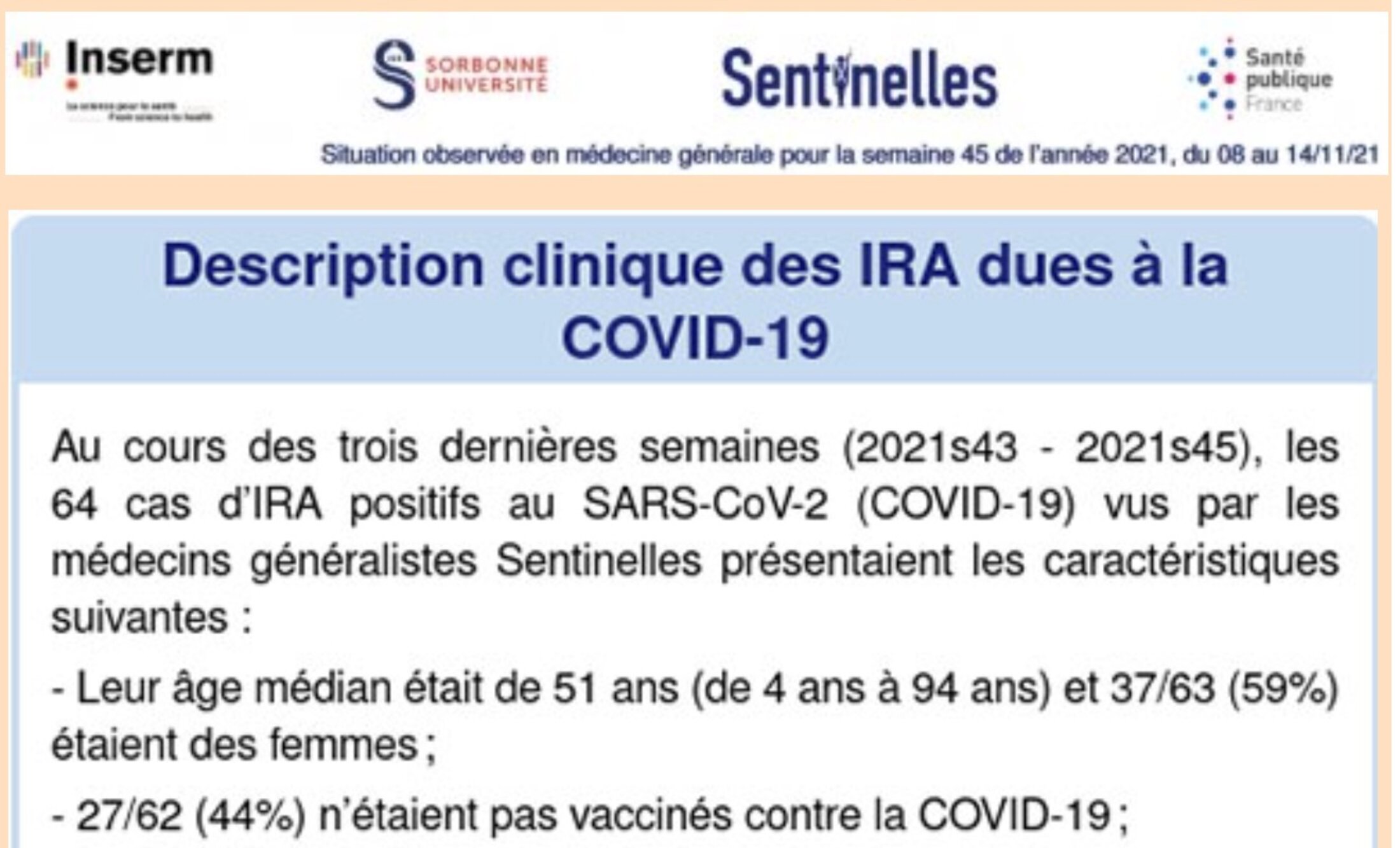 Puisqu’ils ne le font pas, voyons ce qu’en dit l’échantillonnage national du vieux réseau Sentinelles, basé sur des malades diagnostiqués covid par des médecins d’abord, des PCR ensuite ; à l’ancienne, quoi.