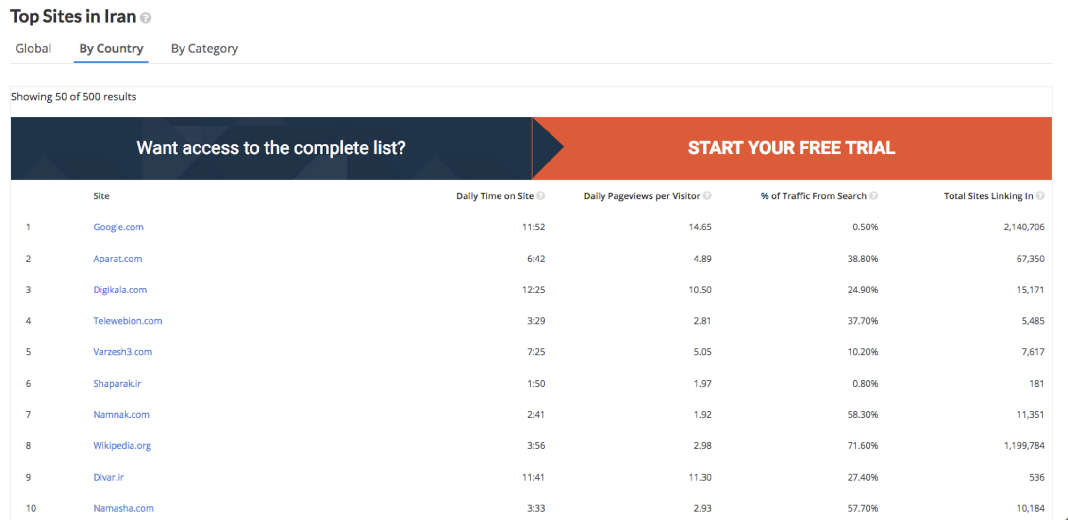 Parallèlement, l’État développe les logiciels nationaux. Il a subventionné de nombreuses entreprises et Startups afin de créer des applications et des logiciels nationaux. Il a désormais ses moteurs de recherche (comme Yooz ou Parsijou), son service de courriel (Chapar), son Amazon (Digikala), son application de messagerie (Soroush), son Youtube (Aparat), son Waze (Neshan), son Uber (Snapp), etc. Des plateformes de vidéo à la demande (VOD) ainsi que des sites de divertissement en tout genre pullulent. Tous ou presque sont gratuits et diffusent des contenus qui ne posent aucun problème politique, éthique, ou idéologique aux yeux des autorités. Désormais, parmi les dix sites les plus visités par les Iraniens, huit sont créés et ont leurs serveurs dans le pays:
