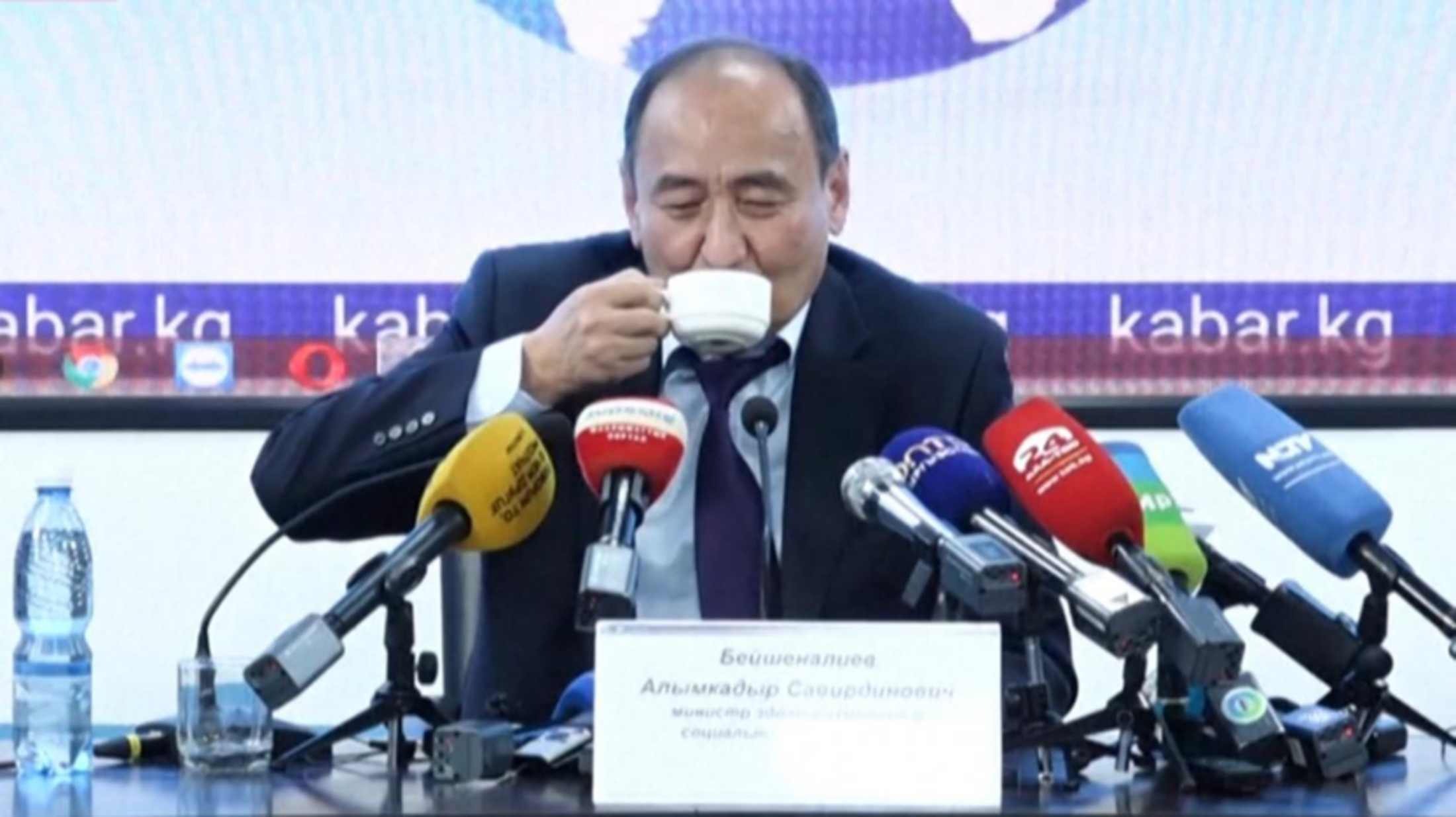 Vendredi 16 avril, lors d’une conférence de presse surréaliste et très commentée depuis, le Ministre de la santé Alymkadyr Beishenaliev a bu en direct devant des journalistes une décoction à base de racine d’aconit, expliquant doctement : « Ceux qui ont des symptômes légers de Covid 19 peuvent récupérer en un à deux jours s'ils prennent ce médicament, et ceux qui en ont des symptômes sévères se rétablissent dans les trois à quatre jours. » Précisant avoir « déjà guéri environ 300 patients de cette façon », le ministre a indiqué que les essais cliniques du médicament étaient d’ores et déjà menés dans les hôpitaux du pays depuis deux semaines, et que c’était le Président Sadyr Japarov lui-même qui avait personnellement déterminé la composition du « remède miracle » et participé à sa préparation.