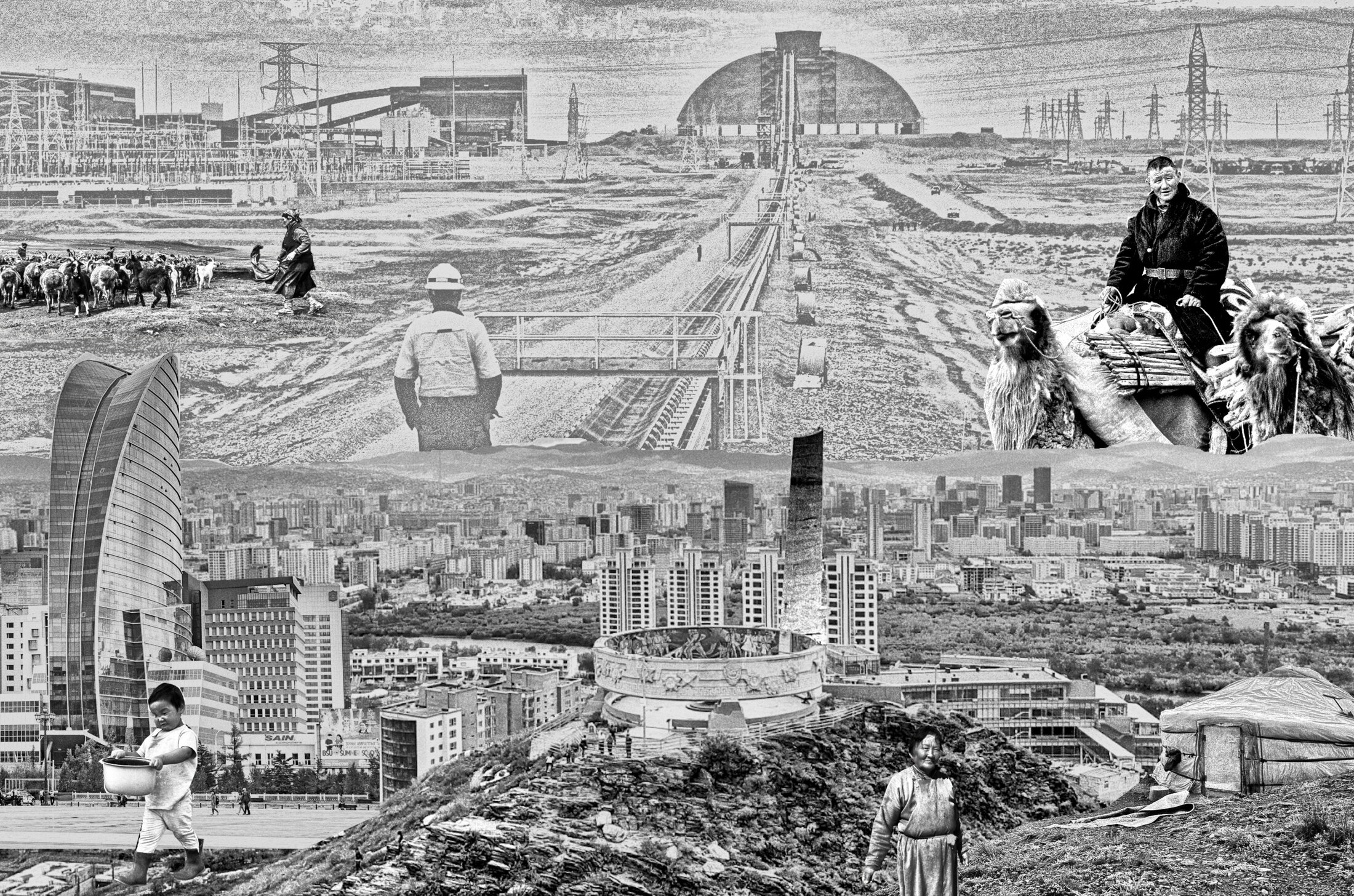 The capital city Ulaanbaatar, built by the brotherhood of the USSR and the Mongolian People’s Republic, is where residents settled shoulder to shoulder. Inside the contemporary metropolis – mixed with soviet “Khrushchyovka” – the city inhabitants call themselves “we” and look down onto the “they” which lives in the overgrowing slum surrounding the city center. “Yurt District” is an organically emerging sedentary settlement of nomadic individuals who permanently choose to be immobile but cannot access housing. Slum-dwellers came in forced or voluntarily because the rest of the country is not altogether metropolitan. Today, semi-nomadic herders are still living in the wilderness and are pushed to sedentarize due to the exclusion of modern essentials such as secure income, education, and health care.