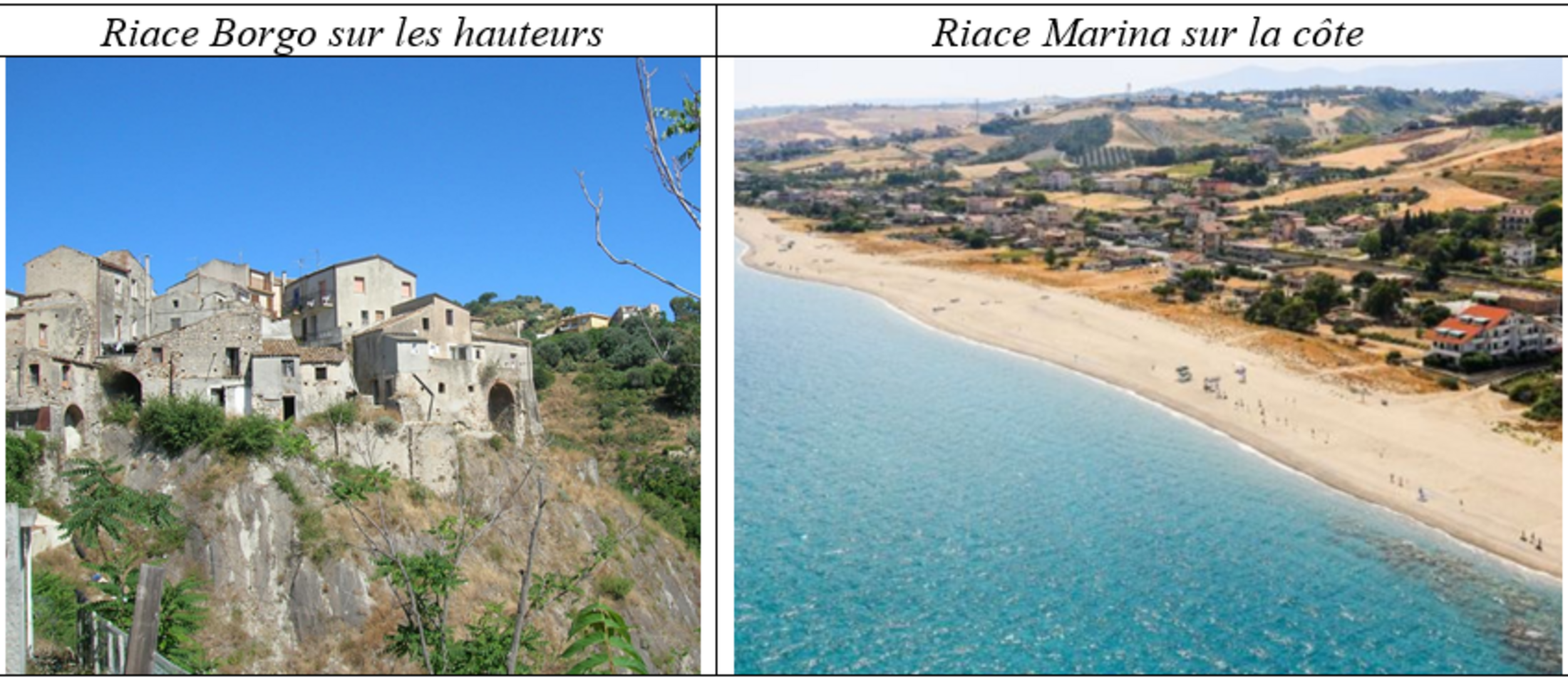 En effet, comme Badolato, Camini, Caulonia, Monasterace, et toutes les communes du littoral avoisinant, Riace a une configuration particulière où un ancien bourg médiéval à flanc de montagne étend son territoire jusqu’à la côte, restée pratiquement vierge avant que ne viennent y bronzer les touristes. Et bon nombre de ces touristes sont des émigrés calabrais, encore attachés à leur terre d’origine où ils retournent régulièrement. Ainsi la langue des conversations sur la plage peut-elle facilement osciller entre dialecte calabrais, Suisse allemand et anglais australien. Deux dynamiques, donc, dans toutes ces communes : d’un côté, le bourg, riche d’un vieux patrimoine à l’abandon au milieu de terres agricoles et de pâturages difficiles à exploiter, de l’autre la côte truffée de constructions récentes, souvent abusives aux deux sens du terme : illégales, et disproportionnées au regard des besoins des habitants permanents.