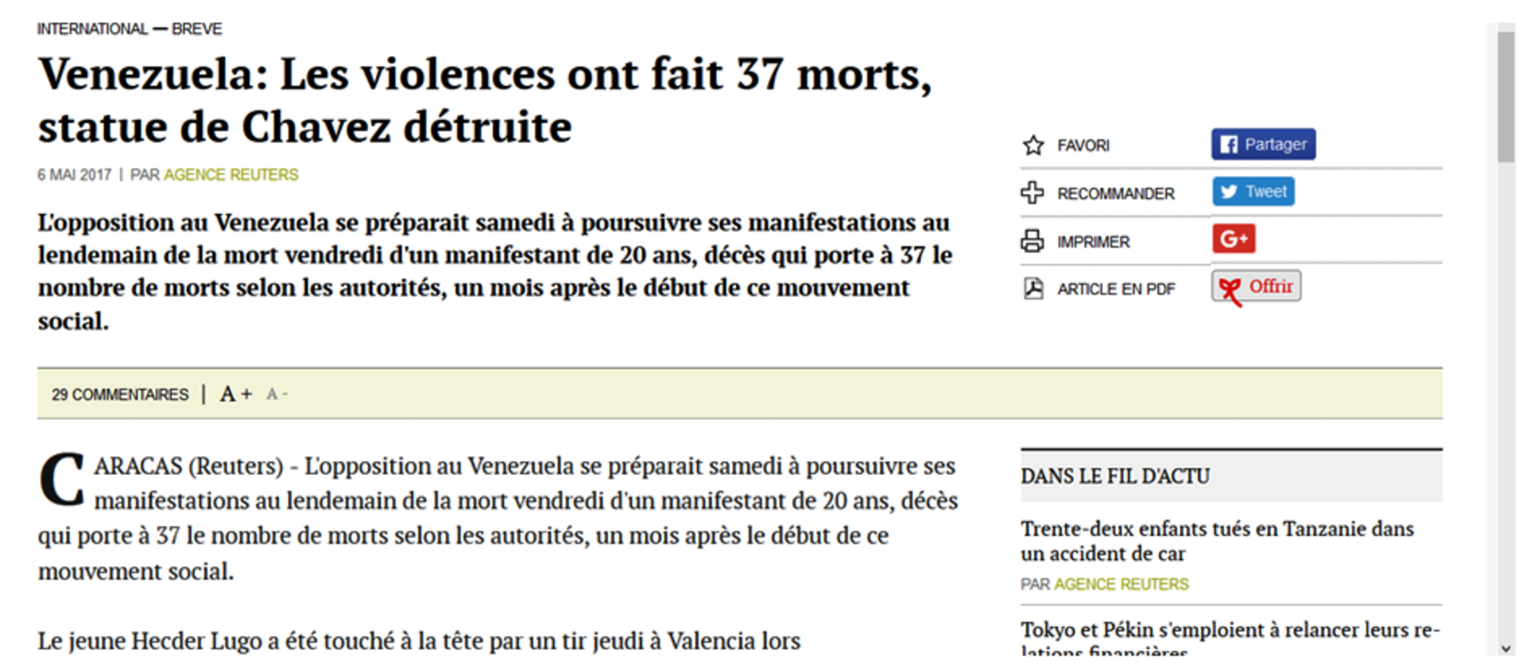 Article qui ne paraitra pas à la UNE