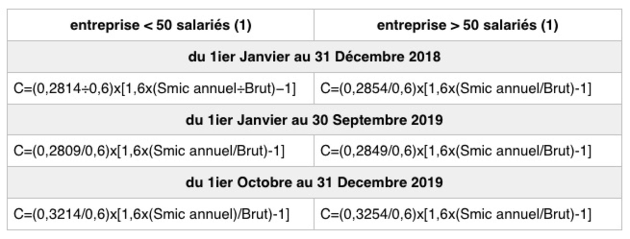 nota 1: la différence de 0,0405 du coefficient sur les deux périodes provient du taux d’assurance chômage de 4,05%.