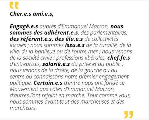 Outre le fait qu’il (ou elle ?) viole la langue française en utilisant l’anglicisme désormais archi rebattu («vous aurez à initier une coopération »), le rédacteur (la rédactrice ?) de cette annonce ne tient pas sa route de zélote de l’inclusivité. On citera « la responsabilité du chef d’entreprise », « le/a candidat.e. sera un cadre supérieur », « les candidats.e.s [présenteront] les moyens qu’ils entendent mettre en œuvre », «information des candidats pré-sélectionnés (sic) », « la note de présentation des candidats », « le jury sera composé ”…] d’un représentant d’Amiens ».