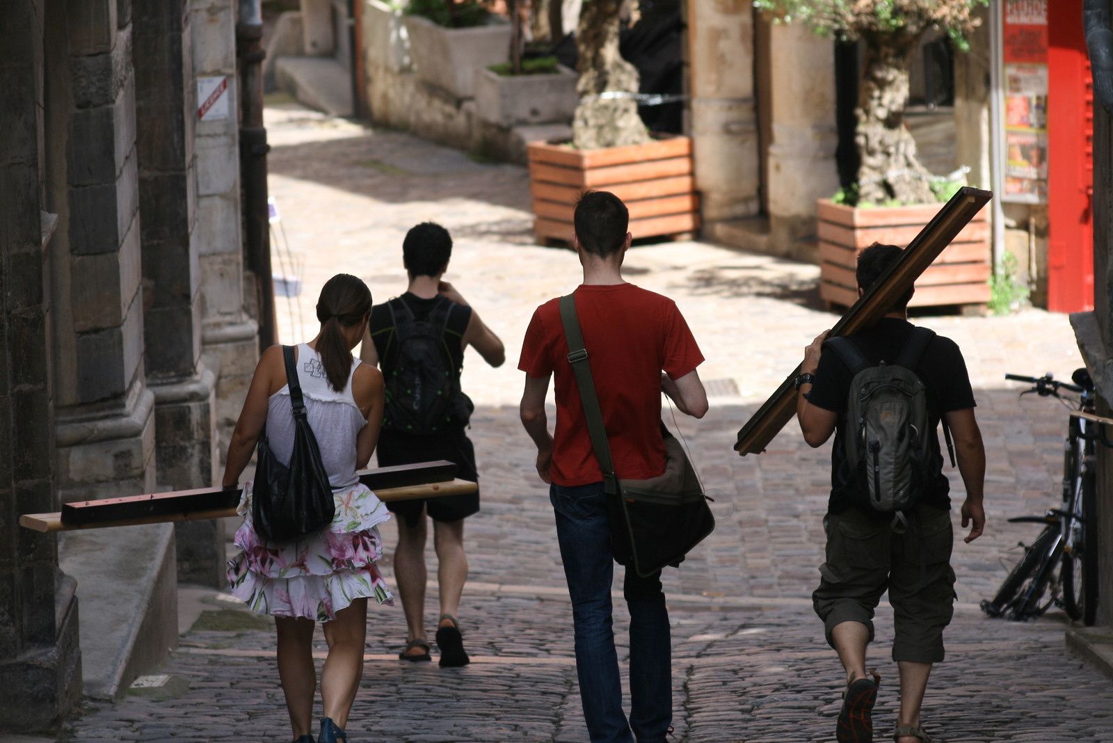 À Lyon, il y a des touristes vues de dos.